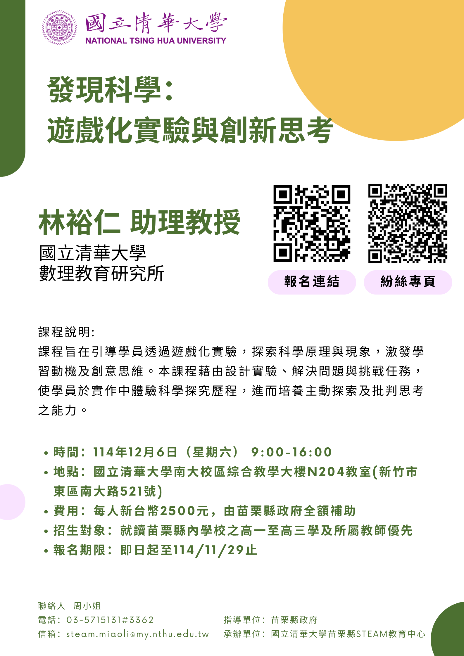 國立清華大學「發現科學:遊戲化實驗與創新思考」主題課程