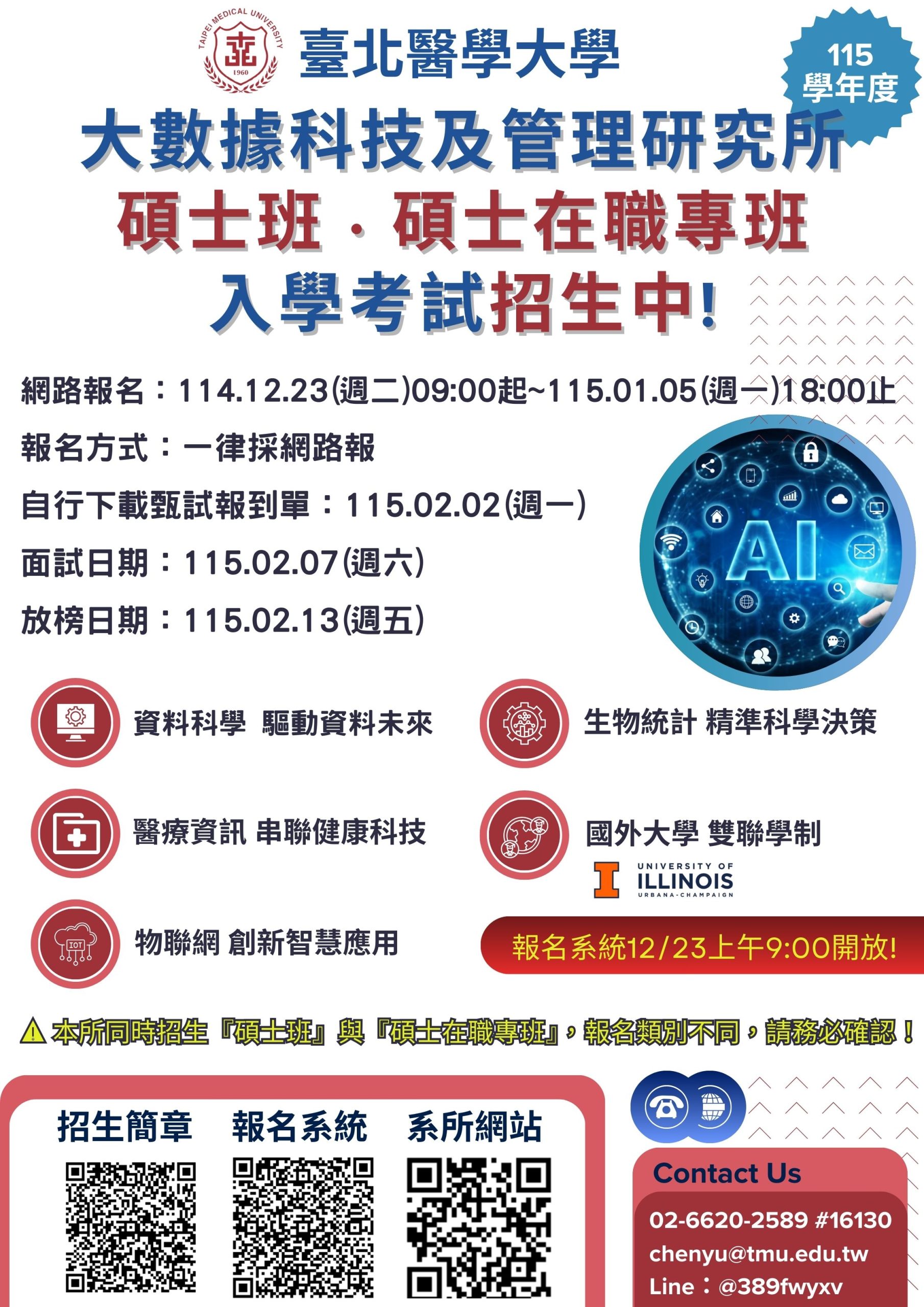 臺北醫學大學大數據科技及管理研究所碩士班/碩士在職專班115學年度入學招生