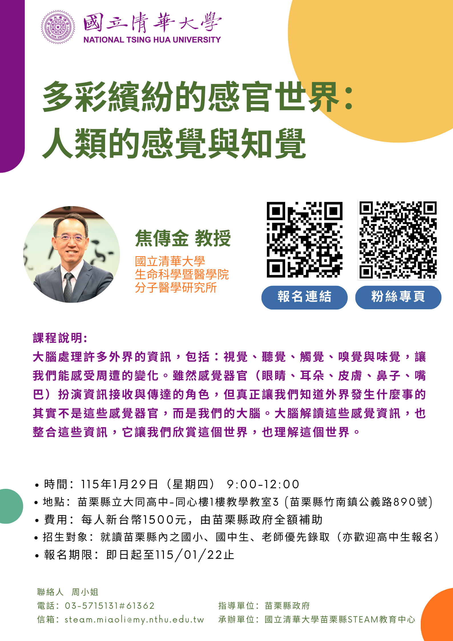 國立清華大學「多彩繽紛的感官世界:人類的感覺與知覺」主題課程