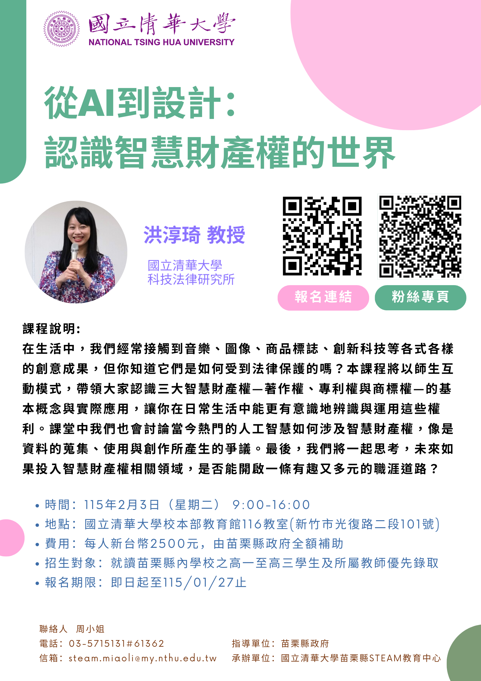 苗栗縣STEAM教育中心辦理「從AI到設計:認識智慧財產權的世界」主題課程
