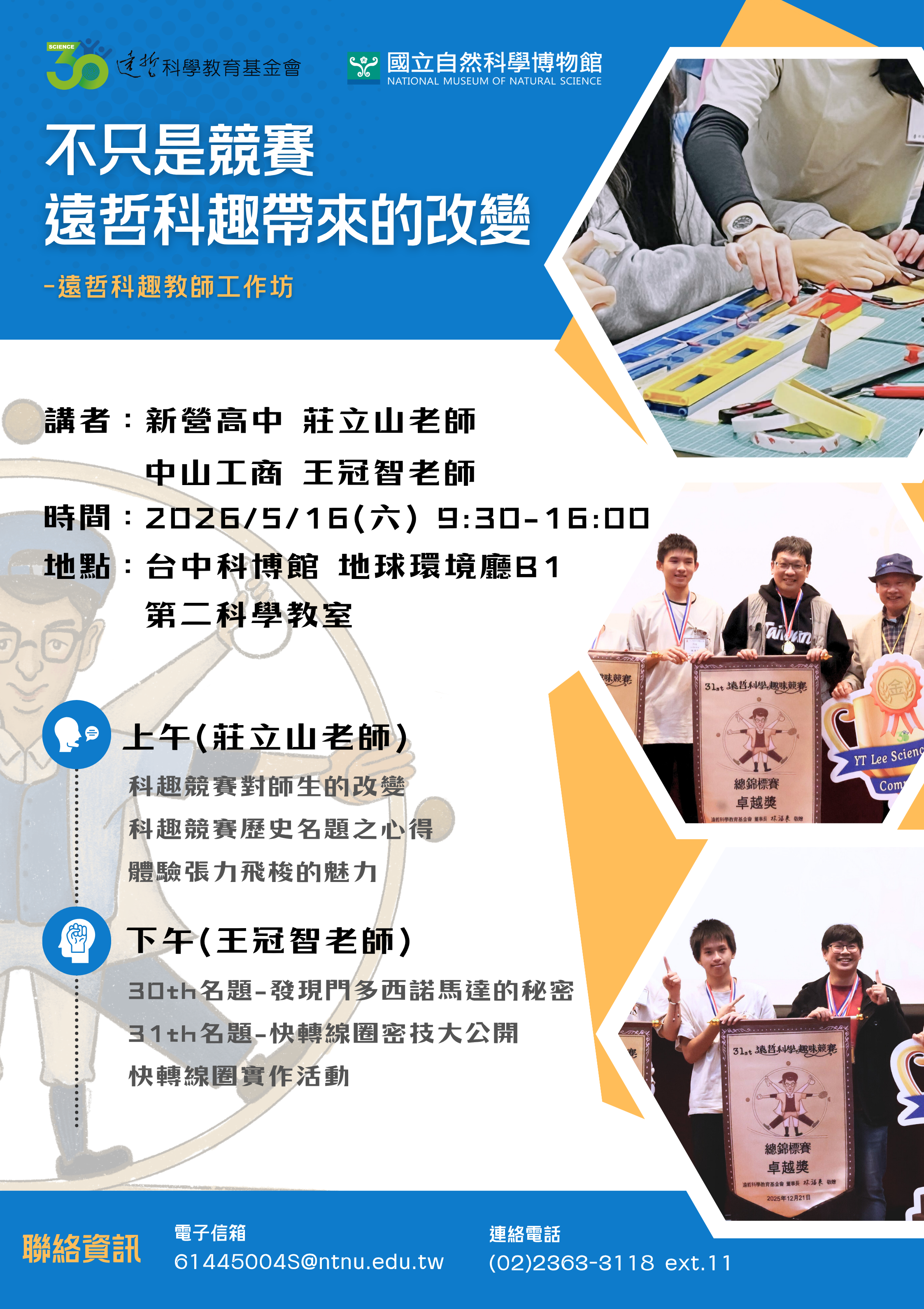Post author:管理員Post category:03一般公告 / 教務處Post last modified:2026-04-15教育部國民及學前教育署函下載遠哲科趣教師工作坊海報下載 Post Views: 13